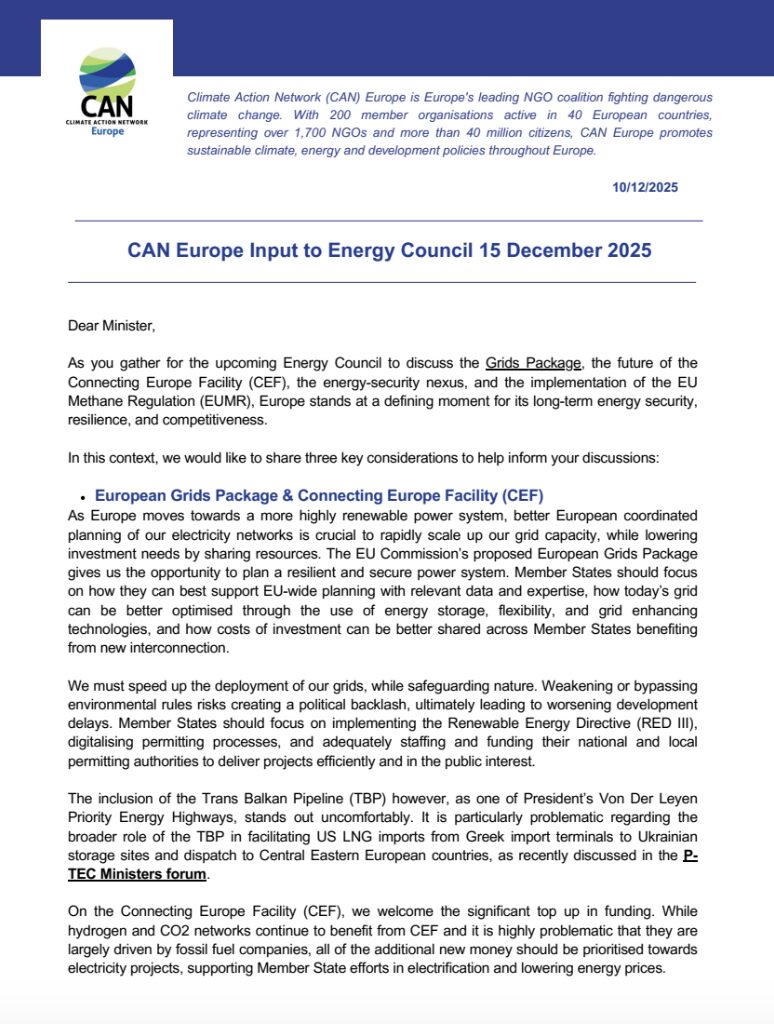 The stakes are high. Continuous attempts to dilute the EU Methane Regulation, combined with growing political attacks and disinformation/misinformation on renewable energyundermine Europe’s sovereignty and make the EU more dependent on a single source of fossil fuel imports, by swapping one fossil fuel dependency for another rather than reducing dependence overall. Initiatives for example like the Trans-Balkan Pipeline (TBP), which could turn Greece into a key US LNG gateway, show how foreign interests are shaping EU energy decisions, risking stranded assets and long-term dependency. Europe cannot let its energy future be decided elsewhere.