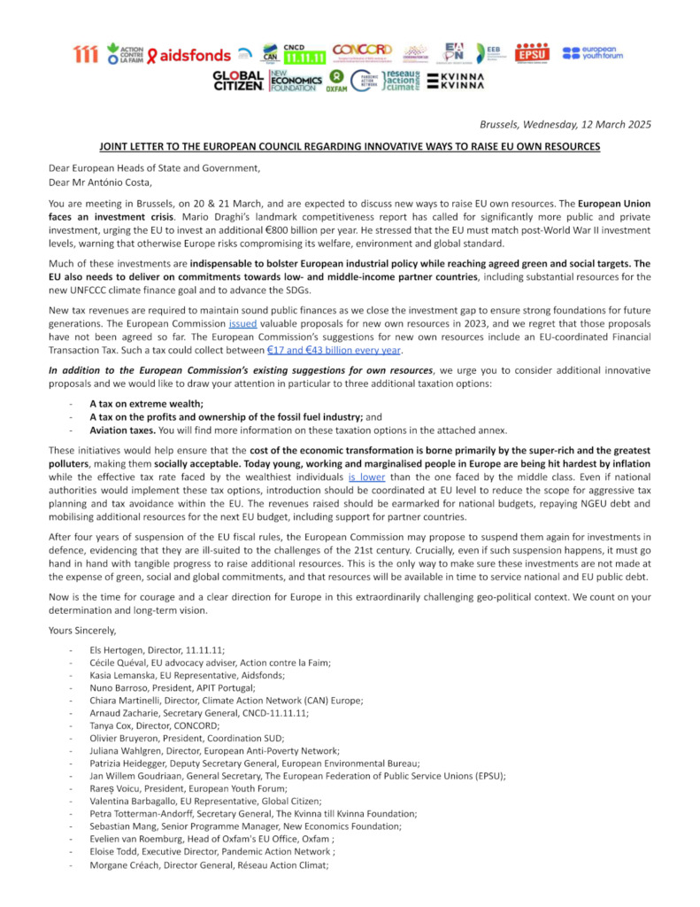 The European Council is meeting in Brussels on 20-21 March, and are expected to discuss new ways to raise the EU’s own resources. The European Union faces an investment crisis. Mario Draghi’s landmark competitiveness report has called for significantly more public and private investment, urging the EU to invest an additional €800 billion per year.