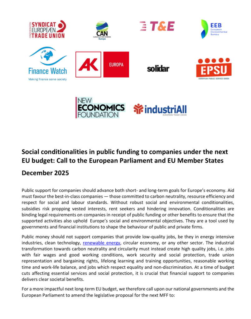 2. Integrate social conditionalities for financial support to companies in the MFF, notably the Competitiveness Fund.